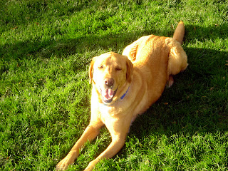 We left Tex in our new backyard for the first time yesterday....and when we got home he was gone!!!! He didn't have his tags on because he wrestled out of his collar at my Dad's this weekend while playing with Cody and we couldn't find it. Anyway....long story short, the animal control centers were all closed by the time we discovered he was gone and so we printed up flyers and put them all up and down our street.